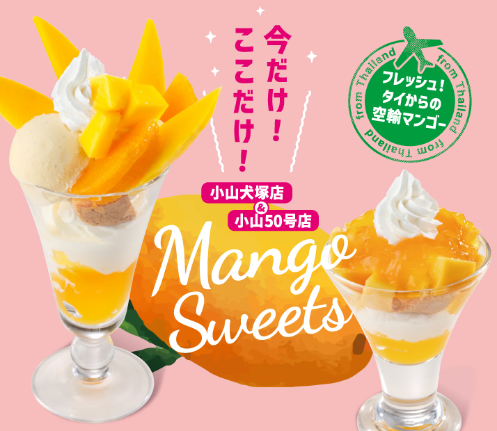 2026年4月23日(木)よりフライングガーデン小山犬塚店及び小山50号店で「マンゴースイーツ」を期間限定販売いたします。